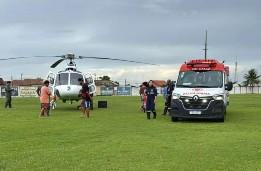O helicóptero do Núcleo de Operações e Transportes Aéreos (NOTAER) pousou na área externa do Ginásio de Esportes Osman Santana Moura, de onde o paciente foi removido para o Hospital Rio Doce, em Linhares, unidade de referência para esse tipo de atendimento.