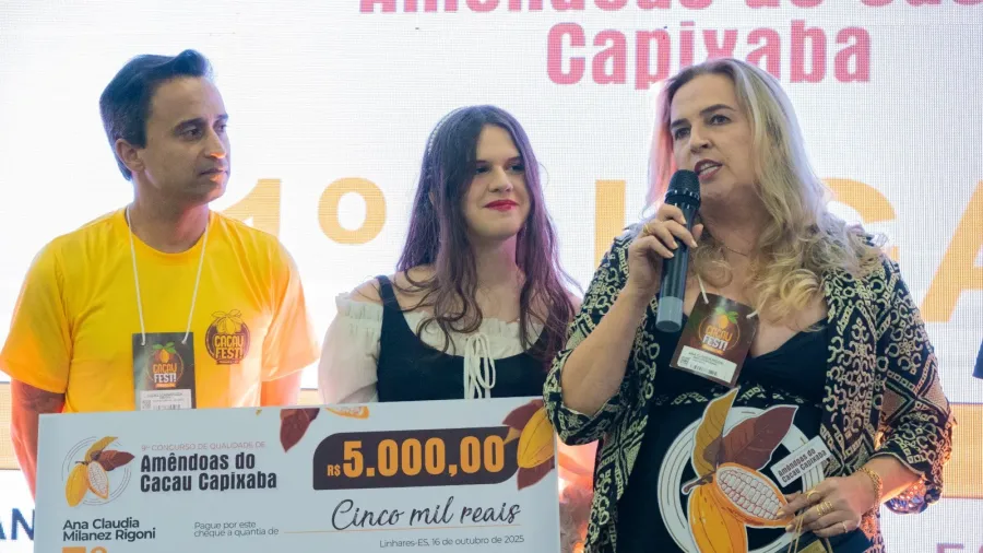 Ana Cláudia também foi a grande vencedora neste ano, no 9° Concurso de Qualidade de Amêndoas de Cacau Capixaba, que aconteceu no último dia 16, durante a Cacau Fest em Linhares. Ela foi primeira colocada na “Categoria Linhares” e ainda levou o prêmio da categoria Destaque Estadual.