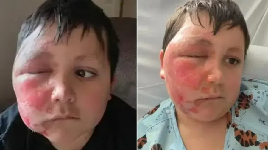 Menino faz desafio do TikTok e acaba com rosto desfigurado
