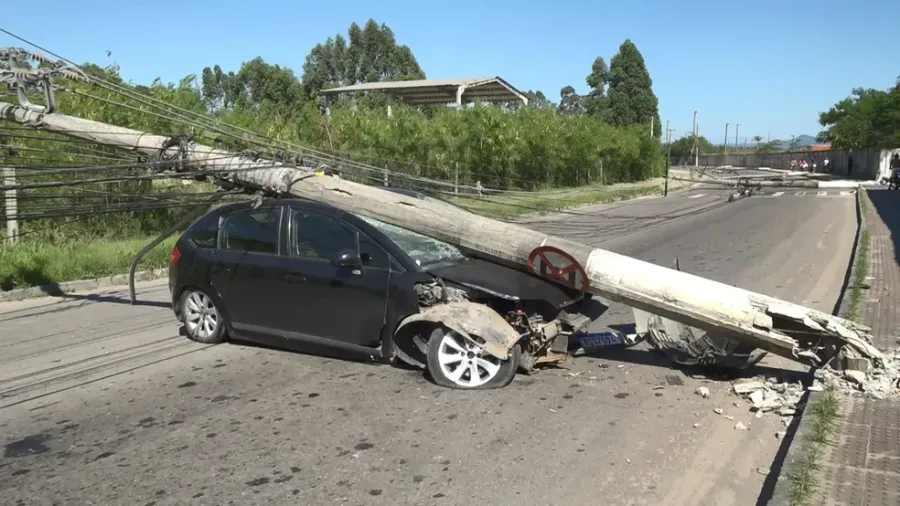 A cena chamou a atenção. O motorista disse que perdeu o controle após um problema na direção do carro. O acidente aconteceu por volta de 1h da madrugada. Com a queda dos postes, parte do bairro ficou sem energia.