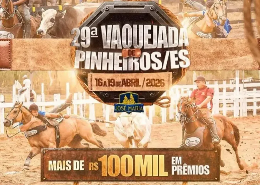A 29ª edição da Vaquejada de Pinheiros será realizada entre os dias 16 e 19 de abril, no novo Parque de Vaquejada Zé Maria, construído nas imediações da Perimetral de Pinheiros (Contorno), próximo ao bairro Jardim Planalto.