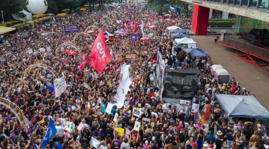 Em São Paulo, a Avenida Paulista recebeu fluxo constante de manifestantes desde as 14h, na altura do Museu de Arte de São Paulo. O levantamento feito pelo Monitor do Debate Político, da Universidade de São Paulo (USP), em parceria com a ONG More in Common, estimou que cerca de 9,2 mil pessoas estiveram presentes na manifestação, que levou o nome de Mulheres Vivas, Mobilização Nacional.