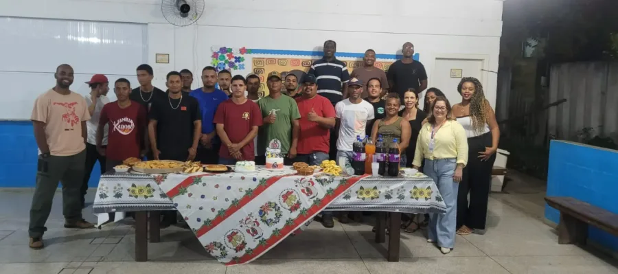 O encerramento contou com registro de alunos durante atividades práticas e pedagógicas realizadas no período do curso.